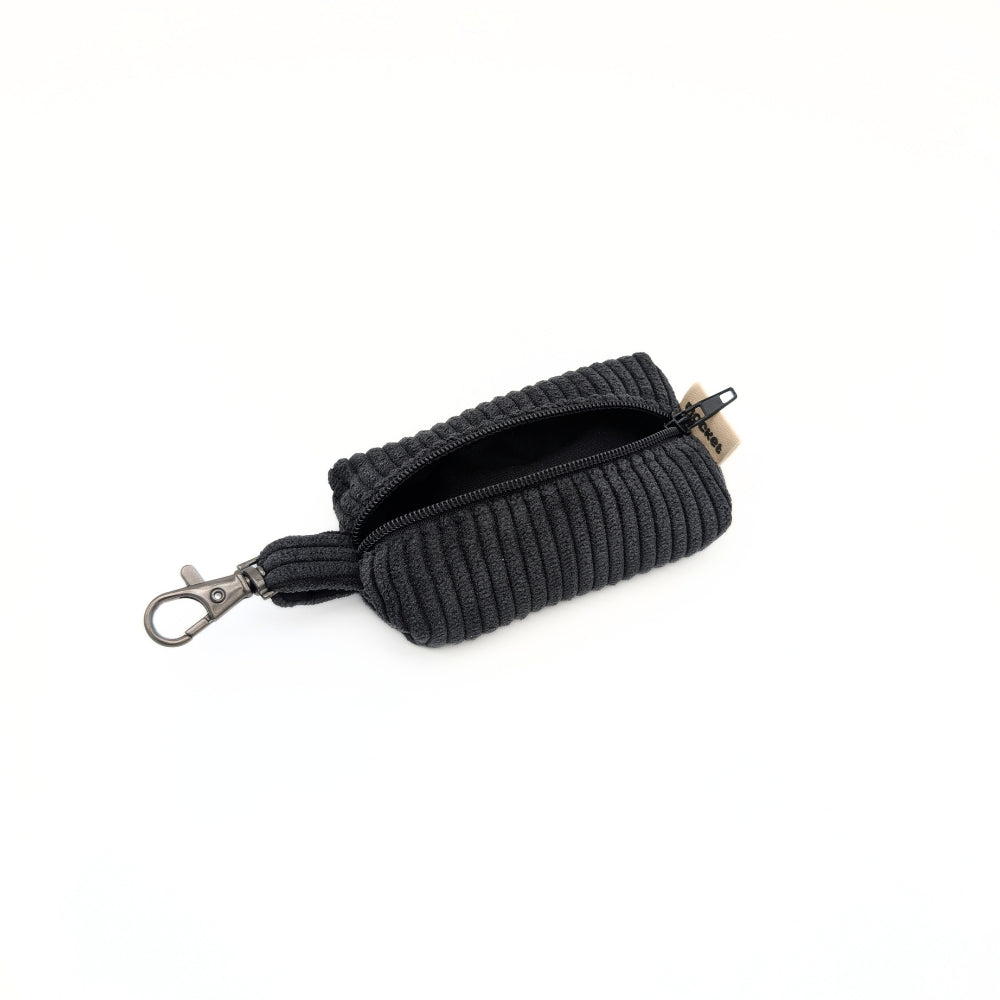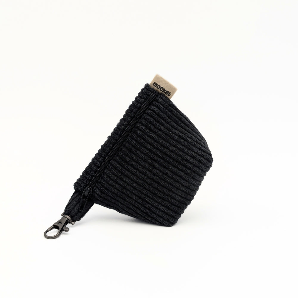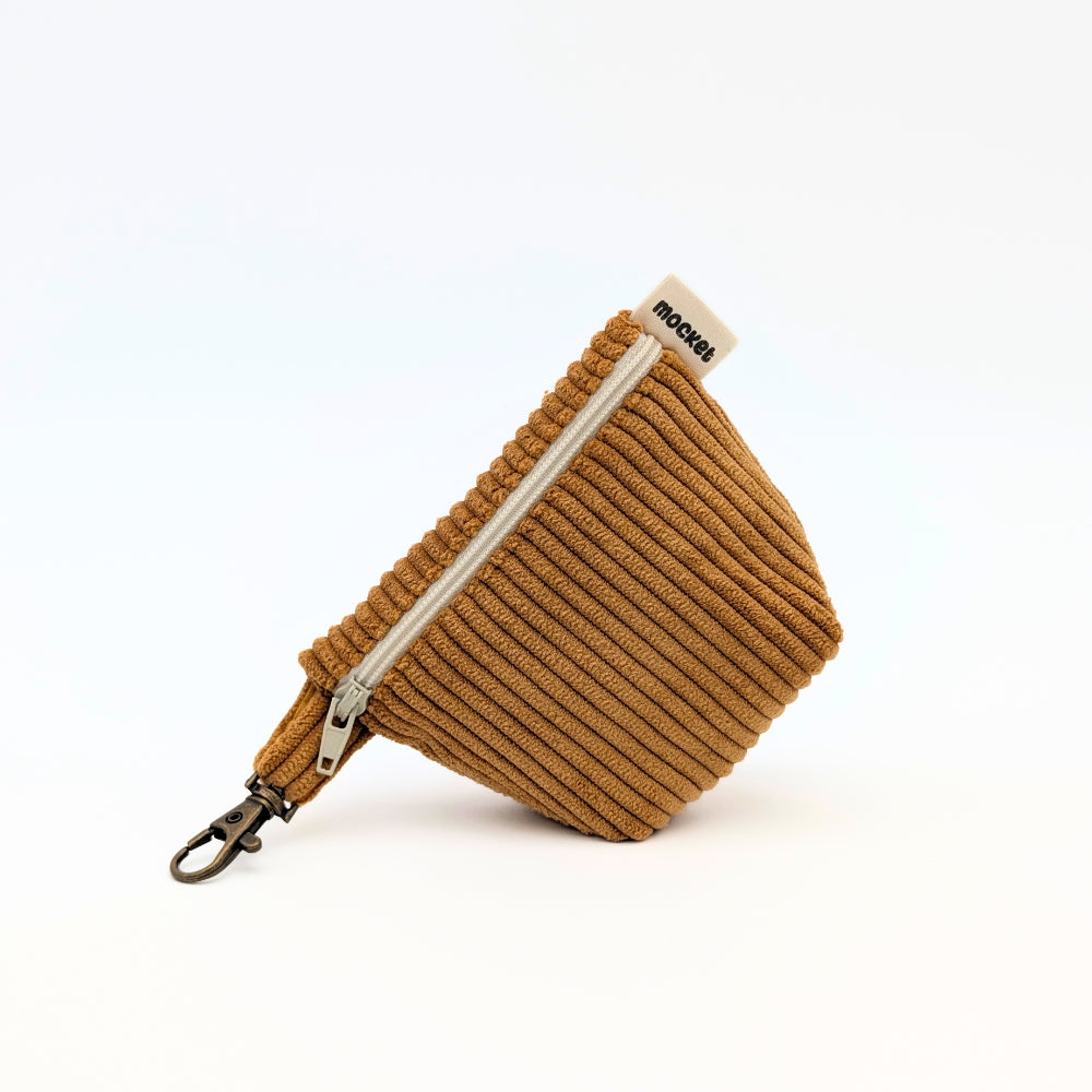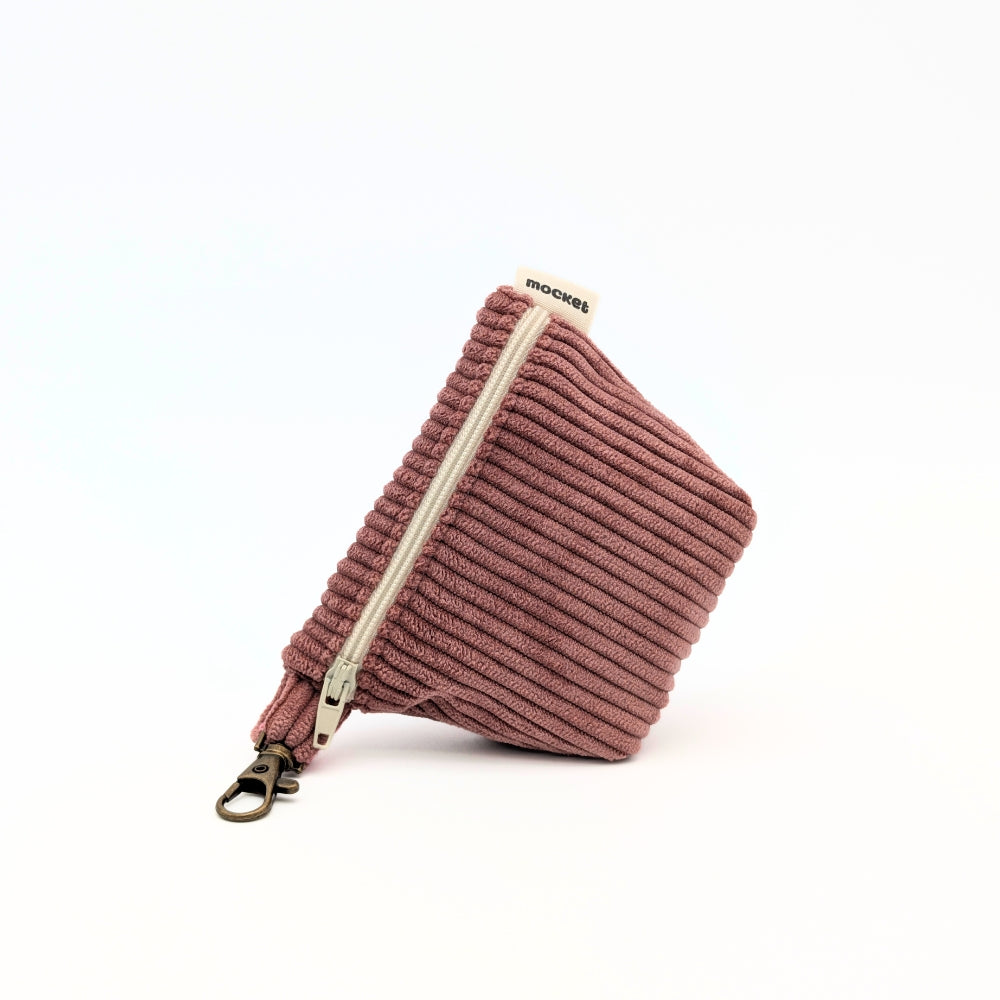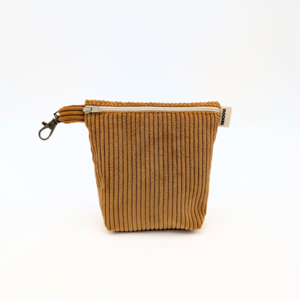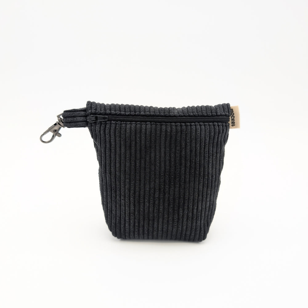 Pochette en velours côtelé doux au toucher, disponible en 3 coloris, dotée d'une doublure intérieure en coton uni pour une finition soignée et contrastée.